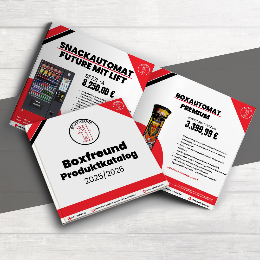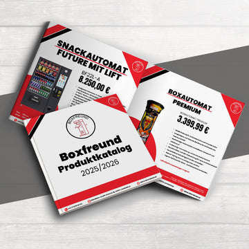 Entdecke im offiziellen Produktkatalog von Boxfreund das komplette Sortiment – von Snack- und Getränkeautomaten über Speziallösungen bis hin zu Unterhaltungsgeräten. Zusätzlich findest du alle technischen Daten, Preise, Leasing- und Mietkaufmöglichkeiten sowie die einzigartigen Vorteile, die Boxfreund zu deinem verlässlichen Partner machen.